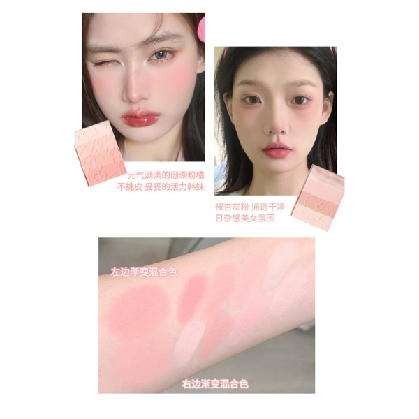 - Bảng phấn má 2 ô với chất phấn mềm mịn, bám màu, lâu trôi , giúp khuôn mặt hồng hào tự nhiên siêu xinh